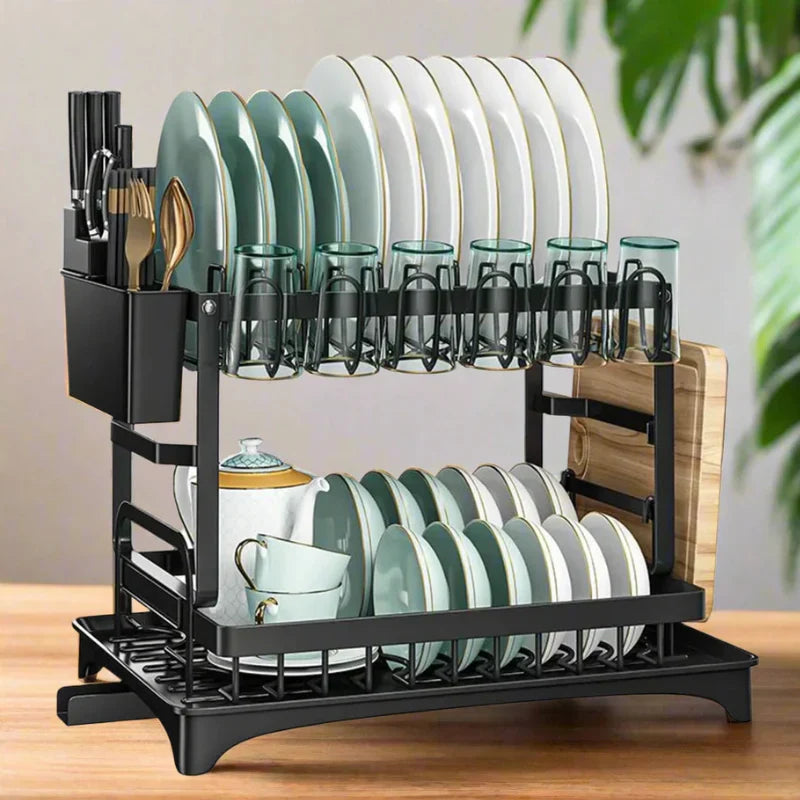 Avec son design à double niveau, il offre un espace de rangement optimisé pour assiettes, verres et ustensiles, tout en apportant une touche moderne à votre cuisine.